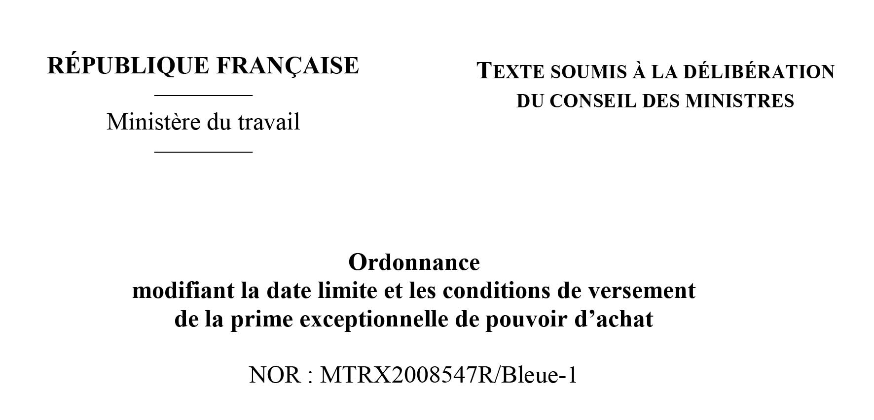 Ordonnance modifiant la date limite et les conditions de versement de la prime exceptionnelle de pouvoir d’achat Cette…